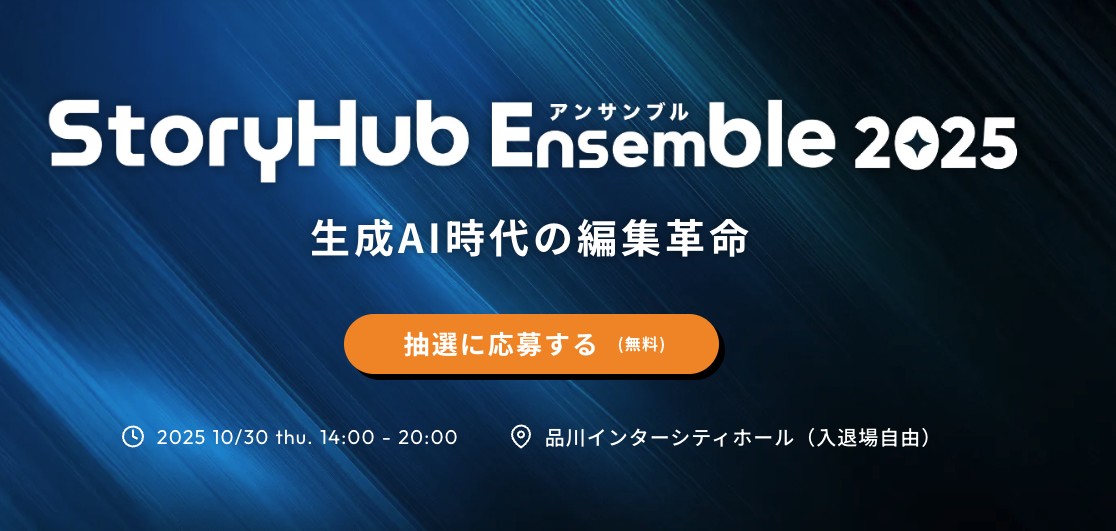 渡邊: 「StoryHub Ensemble」は、メディアの未来を担うすべての方々に参加いただきたいイベントです。参加は抽選制で、10月17日が応募締め切りとなります。生成AIがもたらす変化の最前線で何が起きているのか、ぜひその目で確かめに来てください。会場で皆さんとお会いできるのを楽しみにしています。