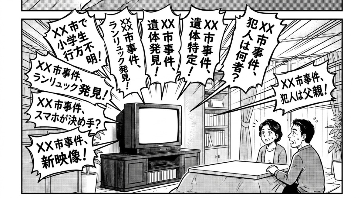 多くの人々がすでに感じているだろう。テレビの報道・情報番組は南丹市の事件ばかり伝えている。朝から晩まで、事細かに詳しく。普通に見ていれば誰だって辟易とするだろう。過剰報道にもほどがある。