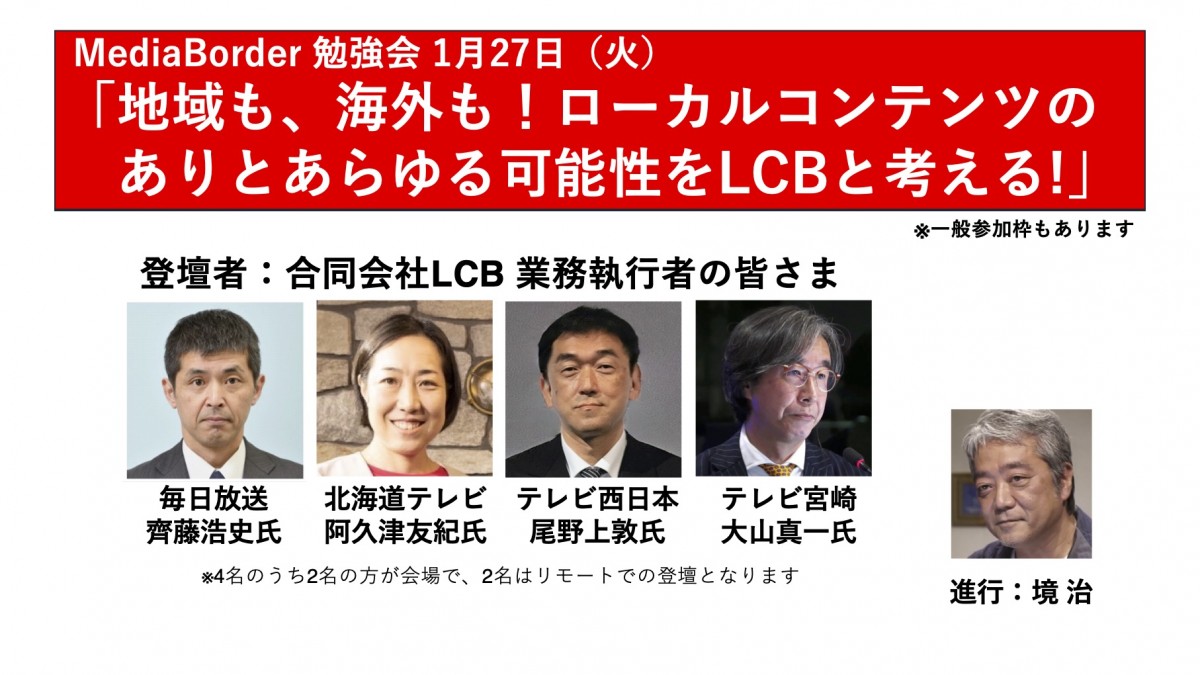 1月27日(火)MediaBorder 勉強会 「地域も、海外も!ローカルコンテンツのありとあらゆる可能性をLCBと考える!」