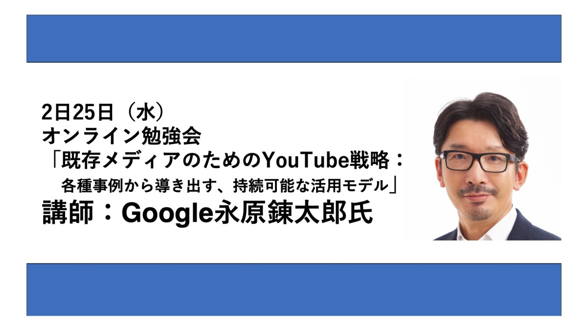 2月25日(水)オンライン勉強会、Google永原錬太郎氏に「既存メディアのためのYouTube戦略」を聞く